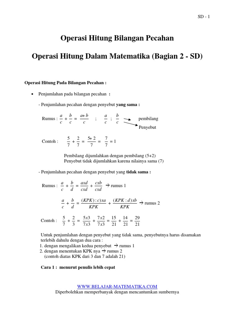 Operasi Hitung Pada Pecahan Situs Matematika Dan Fisika Situs