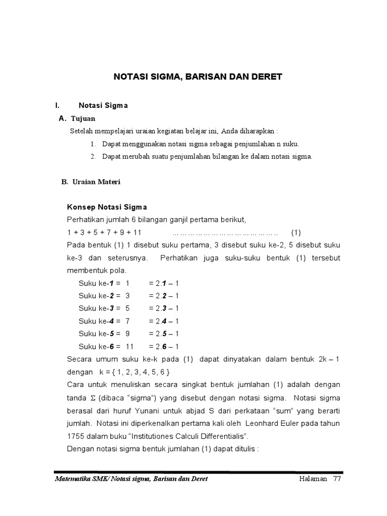 N Notasi Sigma Barisan Deret Dan Induksi Sigma Barisan Deret Dan