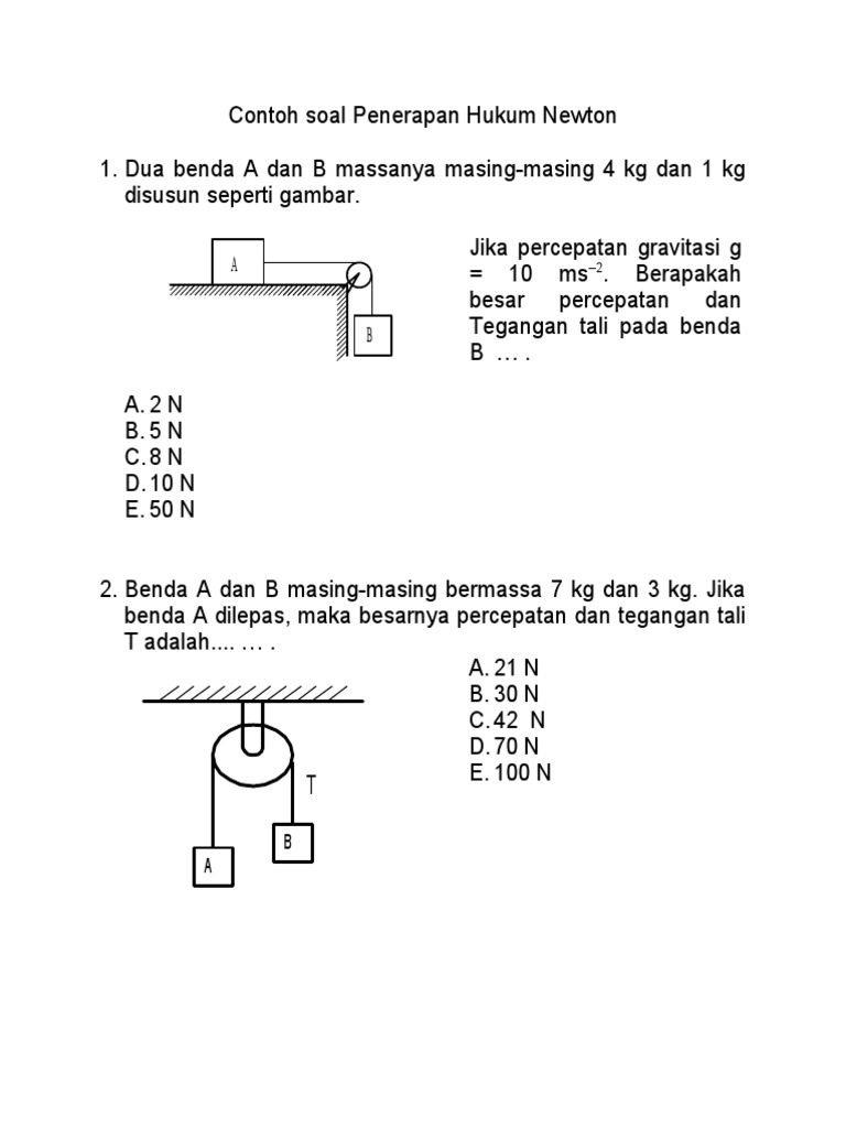 Contoh Soal Hukum 2 Newton Gurumuda Net