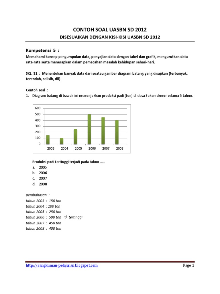 Contoh Soal Diagram Batang Dan Jawabannya Simak Gambar Berikut