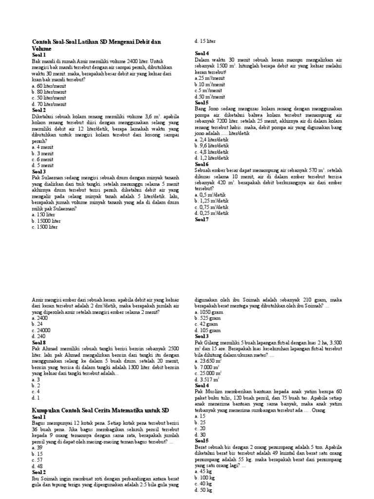 Soal Cerita Matematika Kelas 5 Sd Bank Soal Ujian