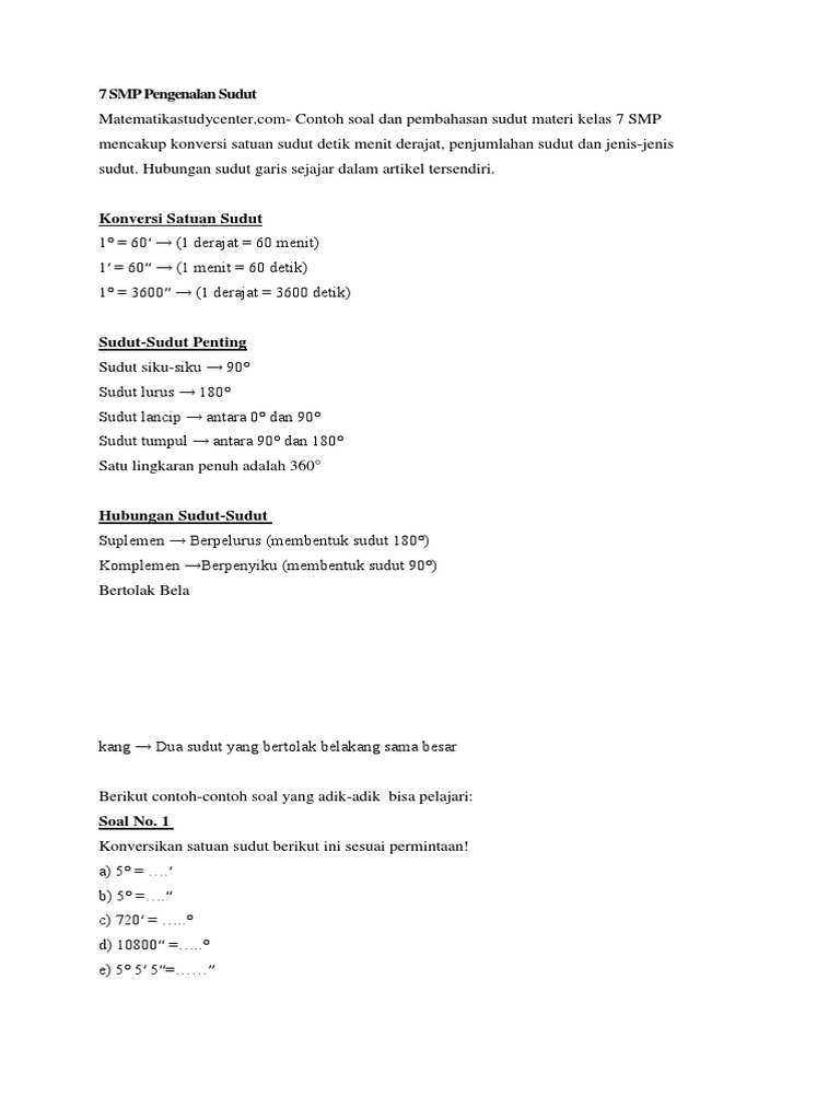 Contoh Soal Dan Pembahasan Tentang Sudut
