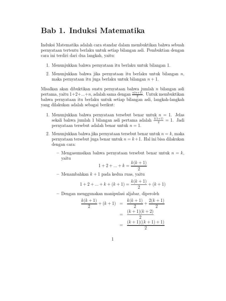 Bab I Induksi Matematik Induksi Matematik Merupakan Salah