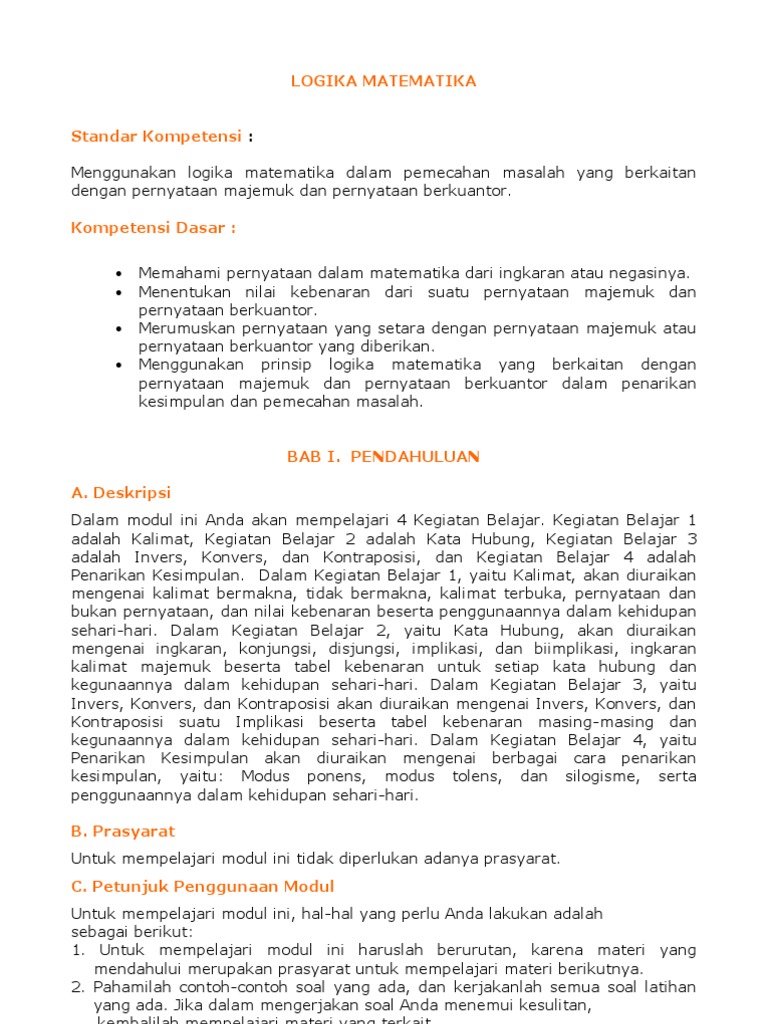 Doc Logika Matematika Pengertian Dan Penjelasan Konsep Di