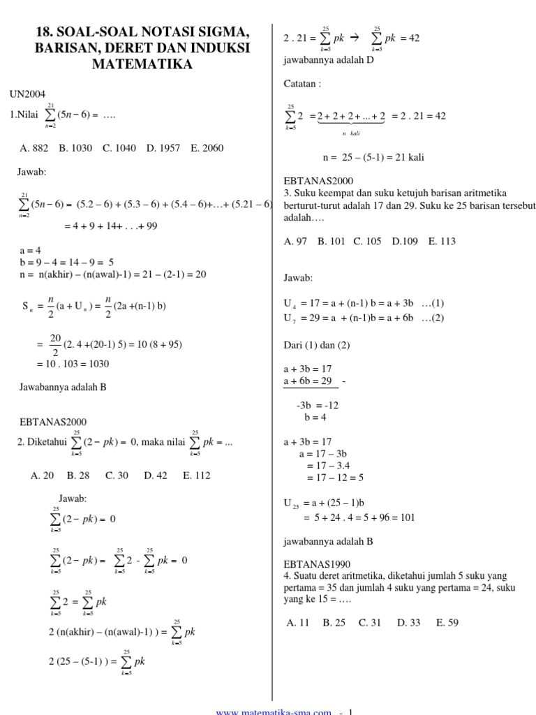 18 Soal Soal Notasi Sigma Barisan Deret Dan Induksi Matematika