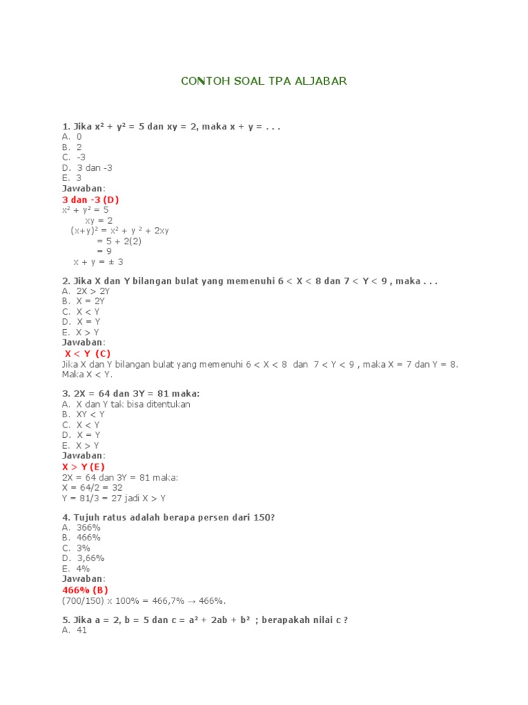 Contoh Soal Tpa Aljabar 3 Dan 3 D