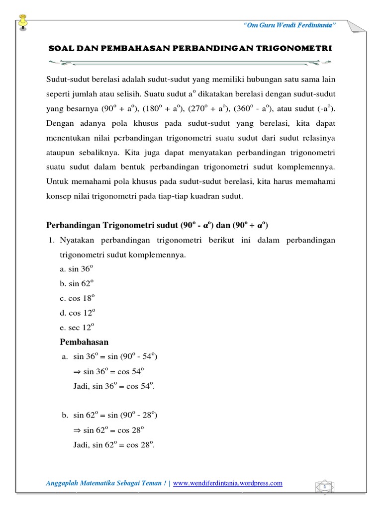 Soal Dan Pembahasan Perbandingan Trigonometri Pdf