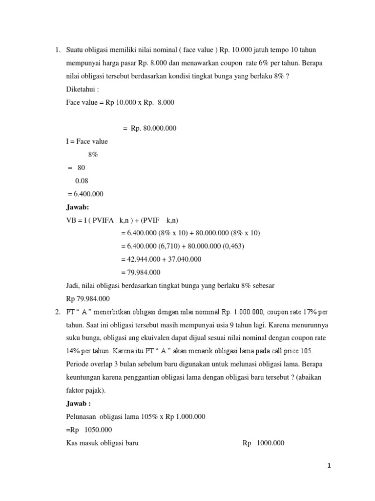 Pdf Contoh Soal Dan Jawaban Obligasi Biaini Neli Academia Edu