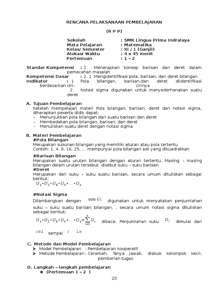 Notasi Sigma Baris Aritmetika Geometri Bank Soal Matematika 23