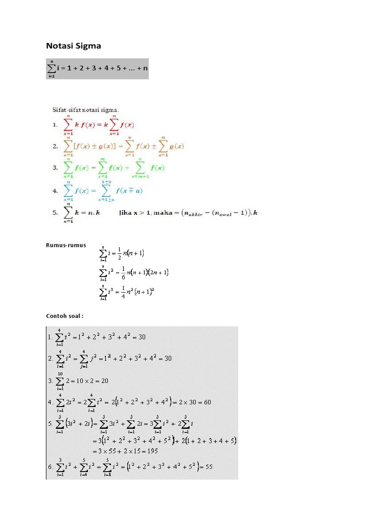 Notasi Sigma Konsep Sifat Sifat Contoh Soal Dan Pembahasan