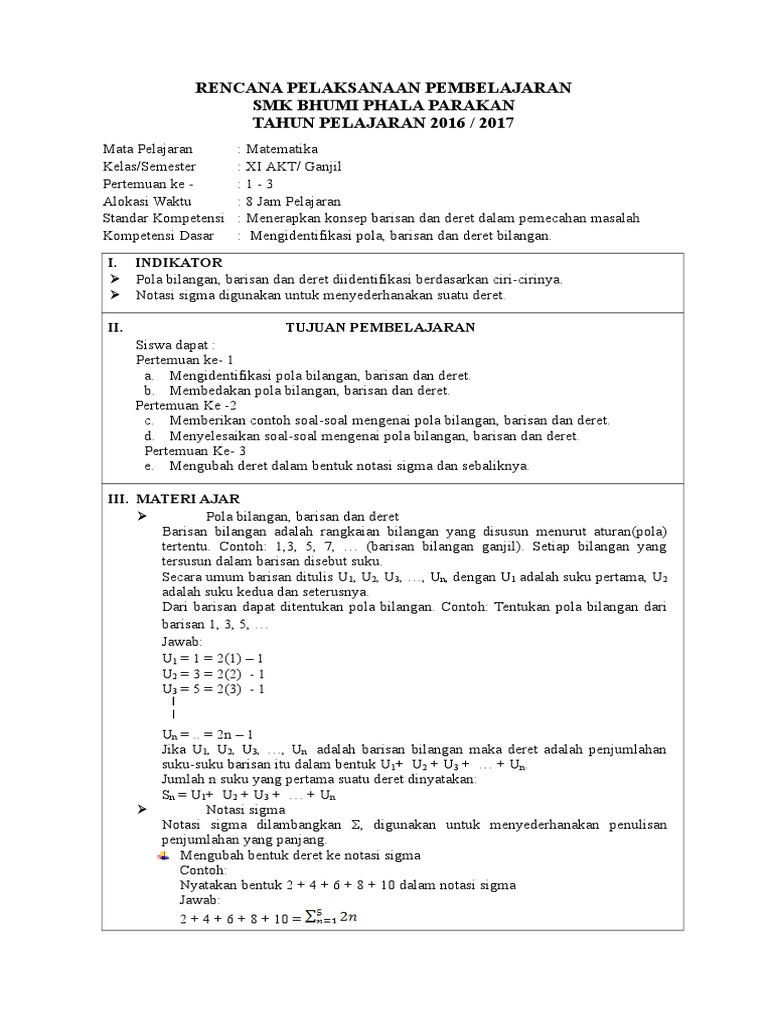 Ruang Belajar Siswa Kelas 1 Contoh Soal Notasi Sigma Kelas 11