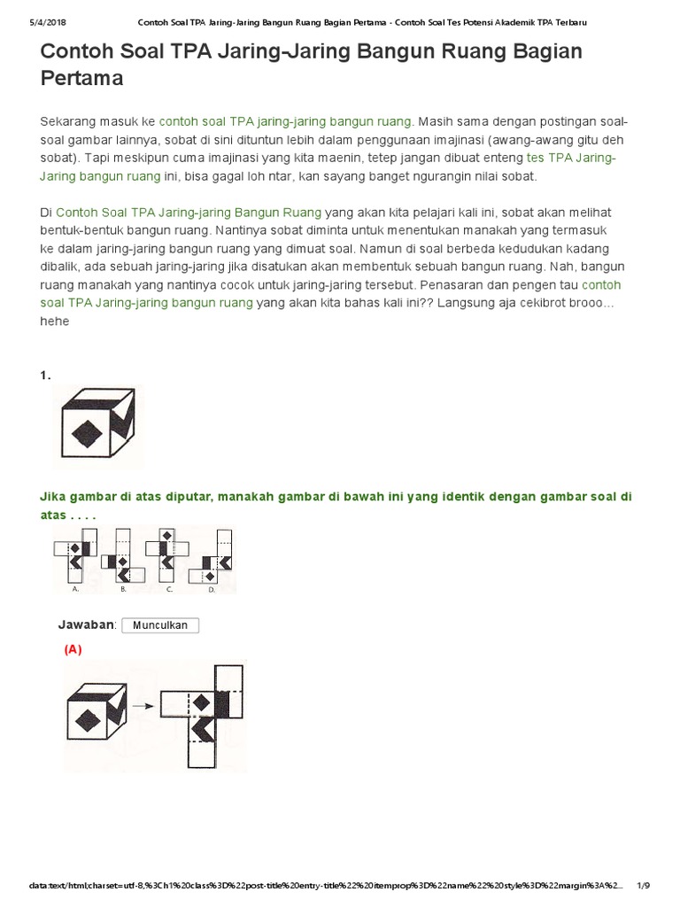 Contoh Soal Tpa Jaring Jaring Bangun Ruang Bagian Pertama