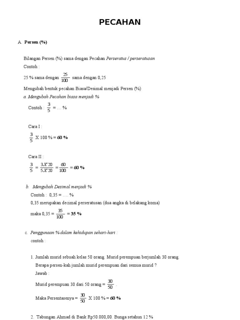Mengubah Pecahan Ke Bentuk Desimal Dan Persen