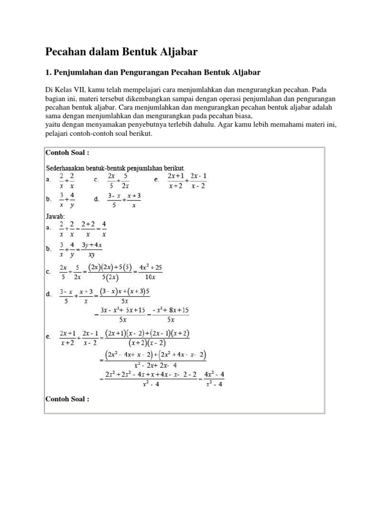 Operasi Hitung Pecahan Aljabar Dan Contoh Soalnya