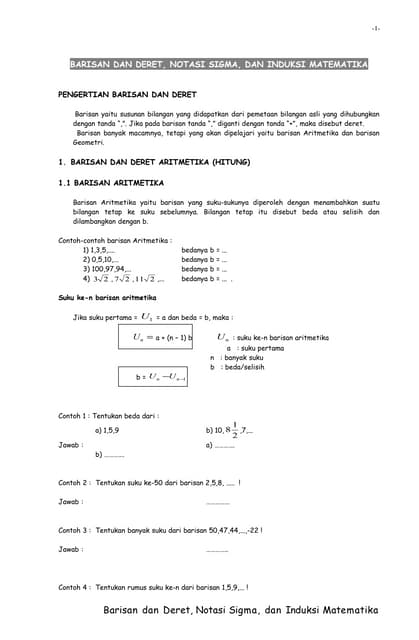 Soal Soal Notasi Sigma Barisan Deret Dan Induksi Matematika
