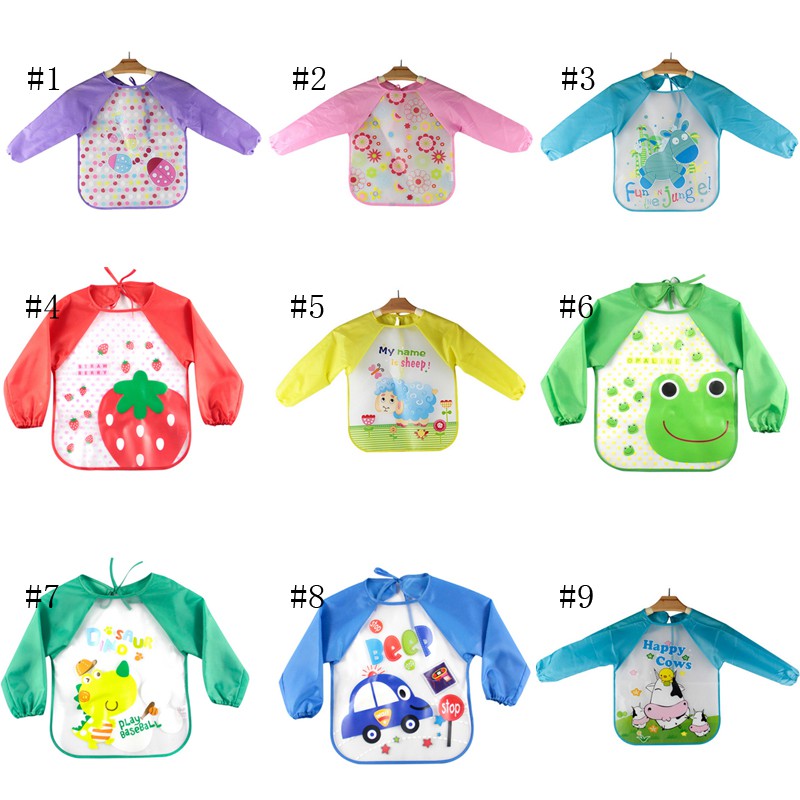 Celemek Bib Anti Air Lengan Panjang Saku Motif Hewan Kartun Untuk Melindungi Baju Anak Dari Makanan