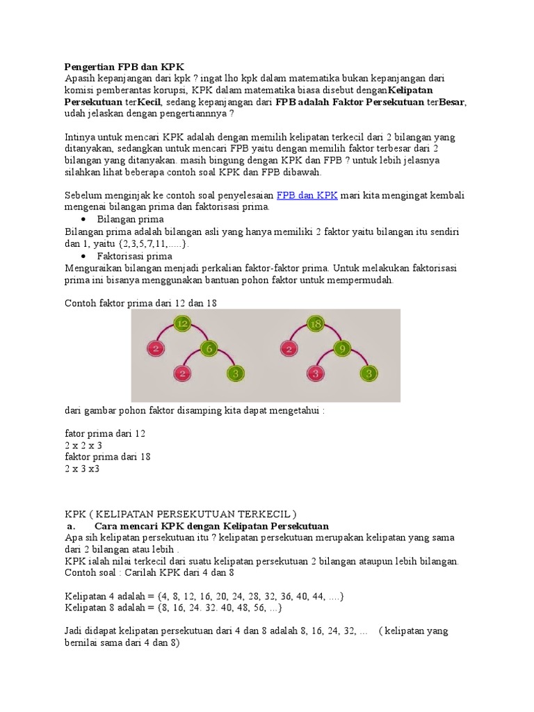 Penjelasan Kpk Dan Fpb Beserta Contoh Soal Brainly Co Id