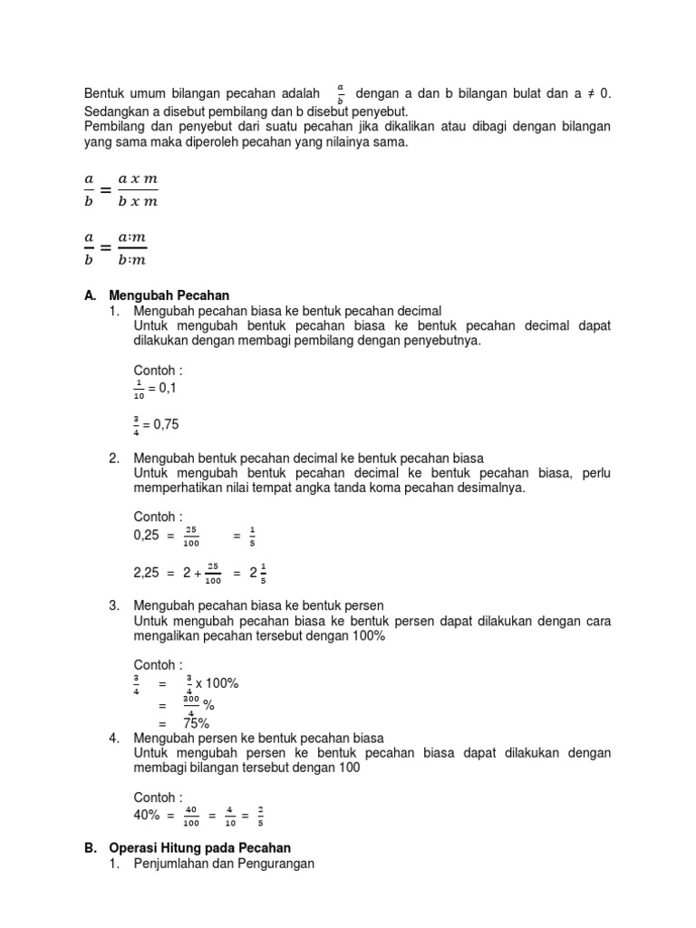 Operasi Hitung Pecahan Biasa Campuran Desimal Dan Persen