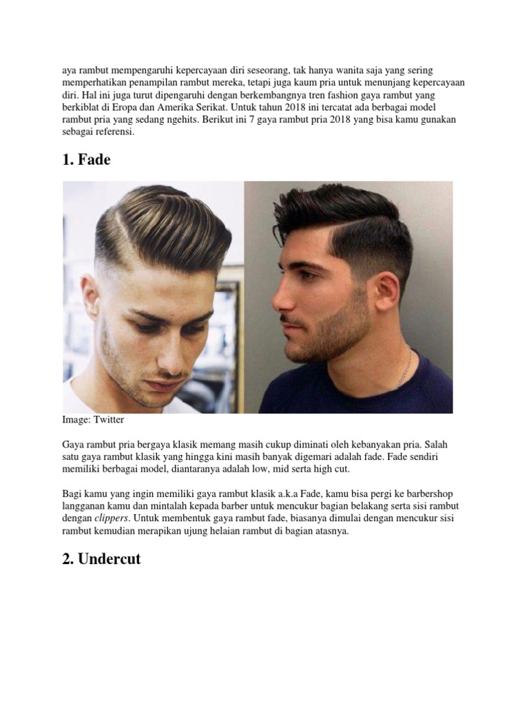 Dimulai dari ranah militer era 50 an teknik potongan rambut fade mulai merambah gaya rambut pria indonesia. Gaya rambut short back and sides adalah pilihan ideal untuk pria yang ingin menambahkan. Nah untuk gaya rambut pria sendiri.